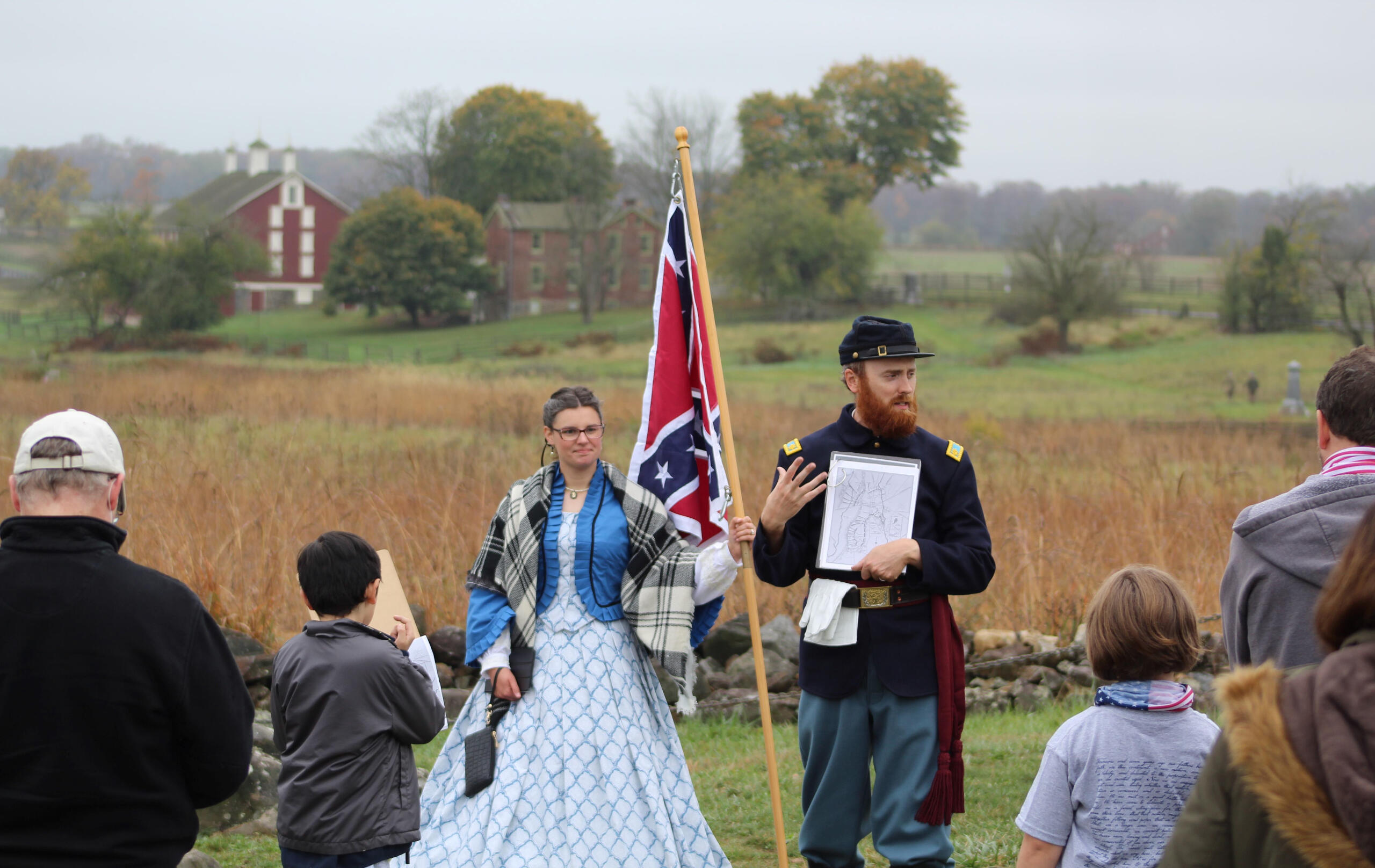 We are not sure that we can do both a Venerable History Tour and one of the museums at Gettysburg. What do you recommend?If you are visiting Gettysburg for the first time, we recommend that you take a Venerable History Tour, and save the museums for your second visit. There is nothing quite like touring the actual battlefield with a costumed guide, walking the fields where the soldiers died, taking a digital scavenger hunt, and engaging in hands-on military demonstrations. It is an immersive experience you will not forget, and we trust, it will inspire you to want to learn more and to explore more of the area on your own in the future.To save on costs, if you are a small school, we recommend that you take more than one class at a time. VHT can attest that a one-room schoolhouse model works well on a battlefield tour, especially if the students are above 1st grade and well behaved.How soon should we contact VHT for a trip?Visitors should contact VHT at least a month in advance to better ensure availability. If you would like to do the signal corps activity at Antietam, please contact us three to four months in advance so we can coordinate things with the national park.Does VHT do any classroom lectures or customized tours, say just of Little Round Top, East Cavalry Field, Burnside’s Bridge, or an entirely different battlefield?If you are interested in a classroom lecture or specialized tour, please contact VHT with your suggestion (preferably several months in advance), and we will get back with you regarding feasibility, availability, and costs. VHT does not guarantee that it can fulfill all specialized requests.Where did you get your costumes?We acquired our costumes from the Gettysburg Emporium. Some of our accoutrements also came from the Regimental Quartermaster, The Maryland Sutler, and C&C Sutlery.